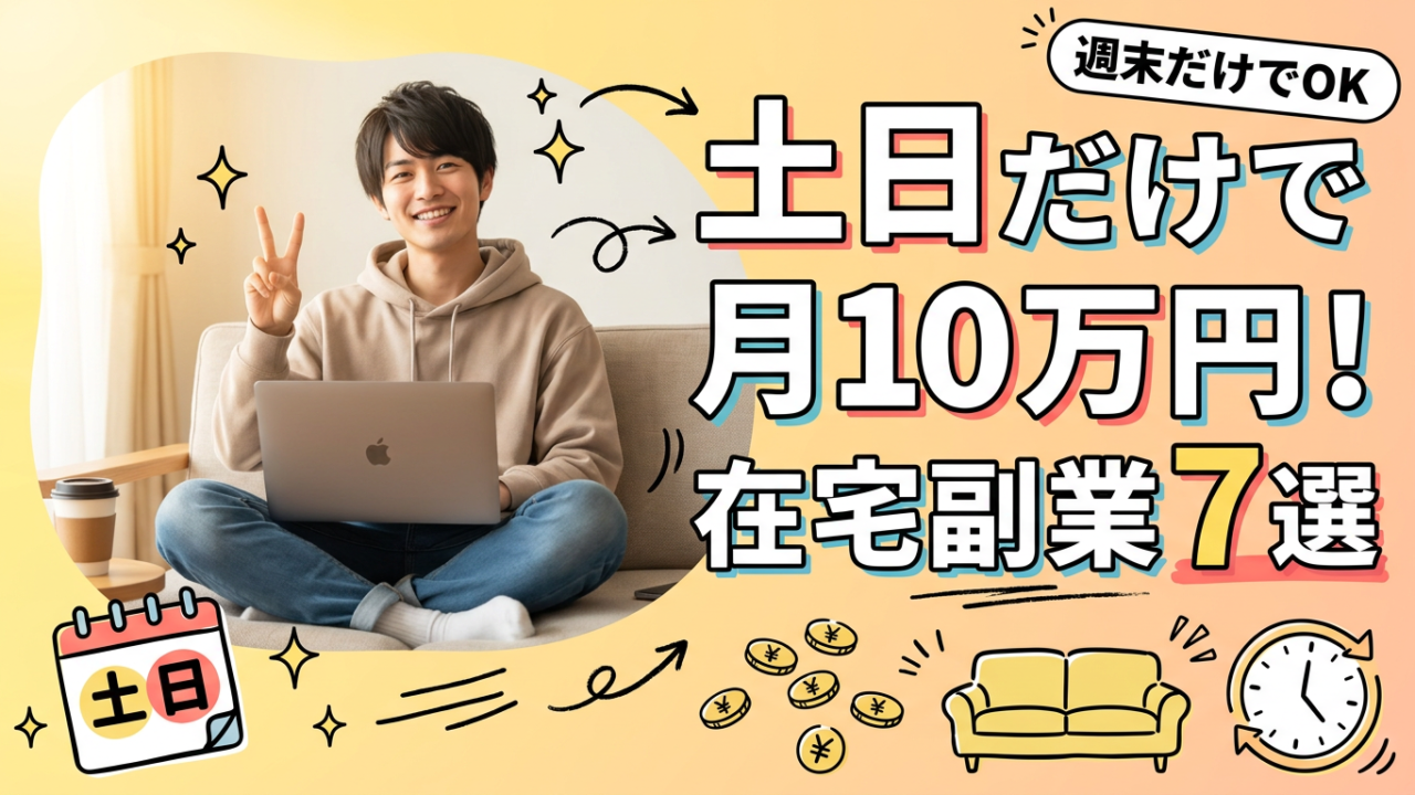この記事では、土日だけの作業で月10万円を目指せる在宅副業を7つに厳選して紹介します。それぞれ「土日にどれくらい作業すればいいか」「現実的にいくら稼げるか」「何から始めるか」まで詳しく解説しています。